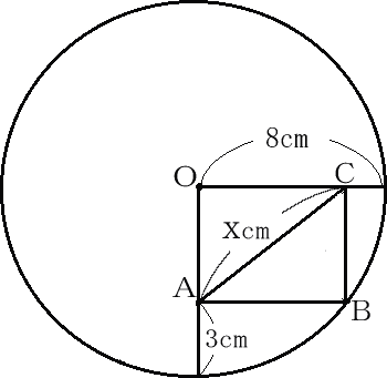 OBは8cmですからXも8cmです。(どちらも長方形の対角線になっています)