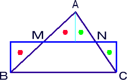 M、Nはそれぞれ、辺AB、辺ACの中点です。