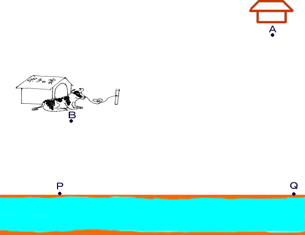 地点をRとすると、AR+RBを最短にするためにはPQのどの地