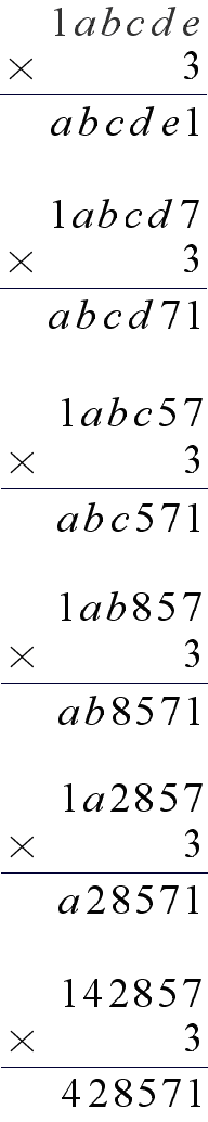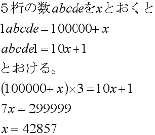 @ eに3をかけたときの答の1の位は1であるからeは7